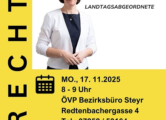 Montag, 17. Nov. 8 - 9 Uhr ÖVP Bezirksbüro, Redtenbachergasse 4
