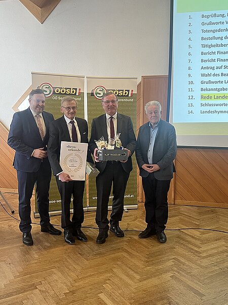 Das Goldene Ehrenzeichen des Seniorenbundes Oberösterreich erhielten Brigitte Burgholzer, Gerald Petschl, Karl Schierl und Gottfried Schuh. Harald Hodanek wurde mit dem Silbernen Ehrenzeichen geehrt.